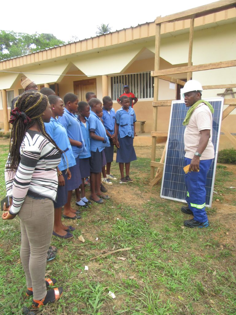 Im März 2018 haben wir geschafft eine kleine Solaranlage mit einer Leistung von 1kW in einem Mädchenwohnheim in Ndom zu installieren. Dank dieser Installation haben die 55 Schulmädchen(13-17 Jahre alt) saubere Energie, um ihre Lebensbedingungen zu verbessern. Sie haben nicht nur eine saubere Beleuchtung für den Alltag, sondern sie haben auch die Energie, um besser zu lernen und einige Arbeitsmaschinen wieCom puter zu benutzen und ihr Handy aufzuladen..